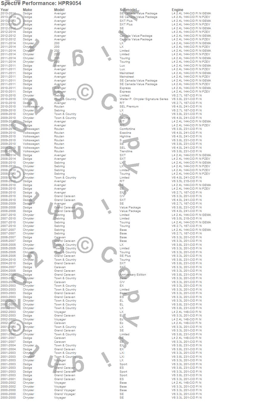 Below is an abreviated list of applications for the HPR OE Replacement Air Filter.