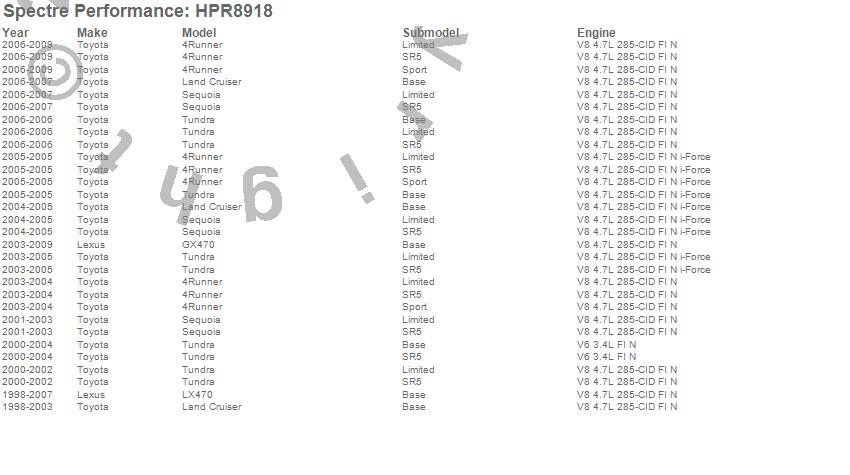 Below is an abreviated list of applications for the HPR OE Replacement Air Filter.