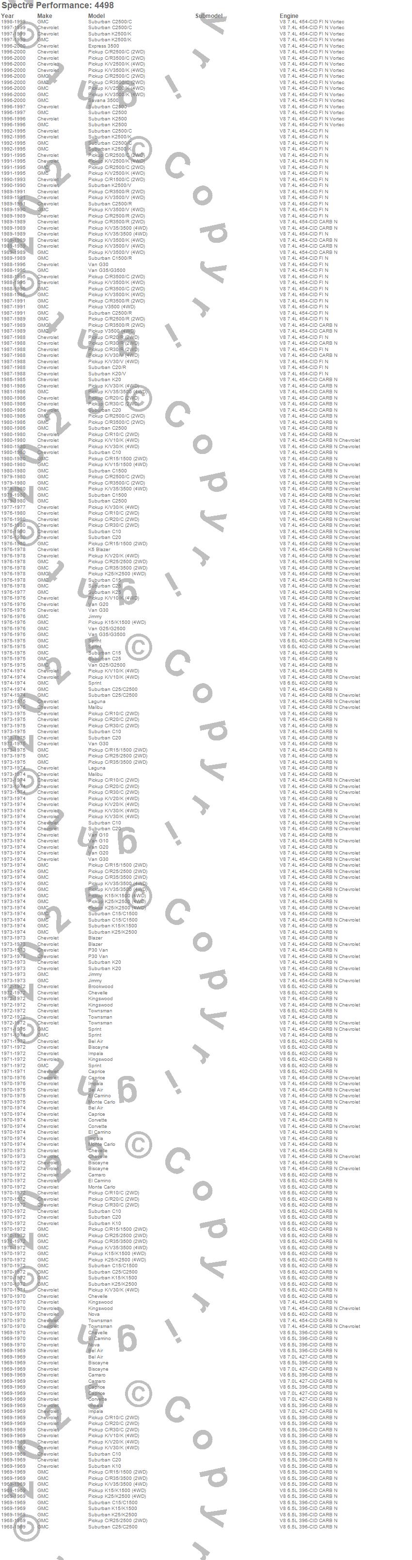 Bel Air, Biscayne, Blazer, Blazer K5, Brookwood, C10 Pickup, C10 Suburban, C15 Suburban, C15/C1500, C15/C1500 Suburban, C1500, C1500 Pickup, C1500 Suburban, C20 Pickup, C20 Suburban, C25 Suburban, C25/C2500 Pickup, C25/C2500 Suburban, C2500 Pickup, C2500 Suburban more…