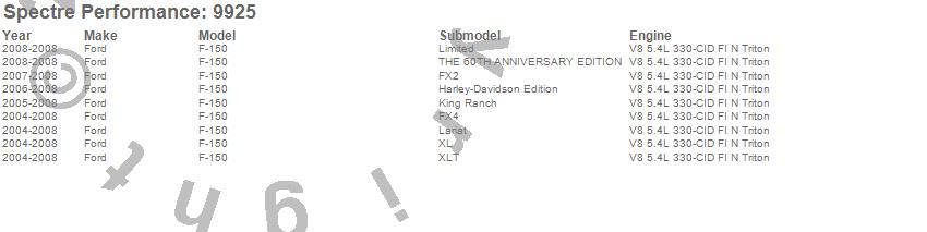 Below is an abreviated list of applications for the Air Intake Kit.
