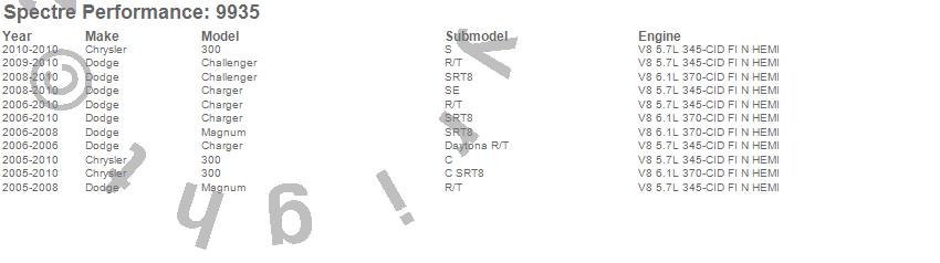 Below is an abreviated list of applications for the Air Intake Kit.