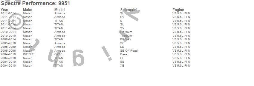 Below is an abreviated list of applications for the Air Intake Kit.