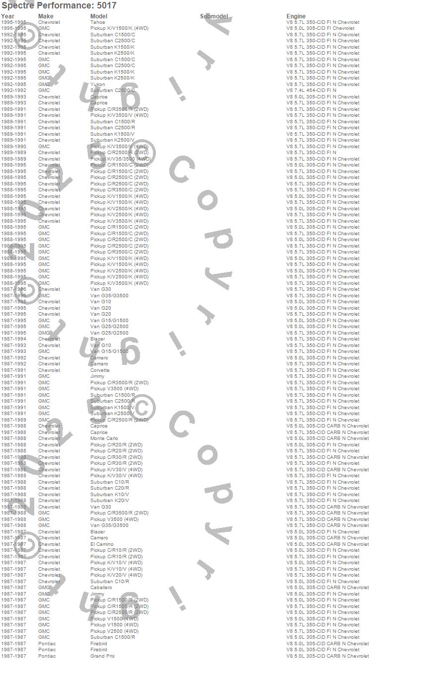 Blazer, C1500, C1500 Pickup, C1500 Suburban, C2500 Pickup, C2500 Suburban, C3500 Pickup, Caballero, Camaro, Caprice, Corvette, El Camino, Firebird, G10 Van, G15/G1500 Van, G20 Van, G25/G2500 Van, G30 Van, G35/G3500 Van, Grand Prix more…