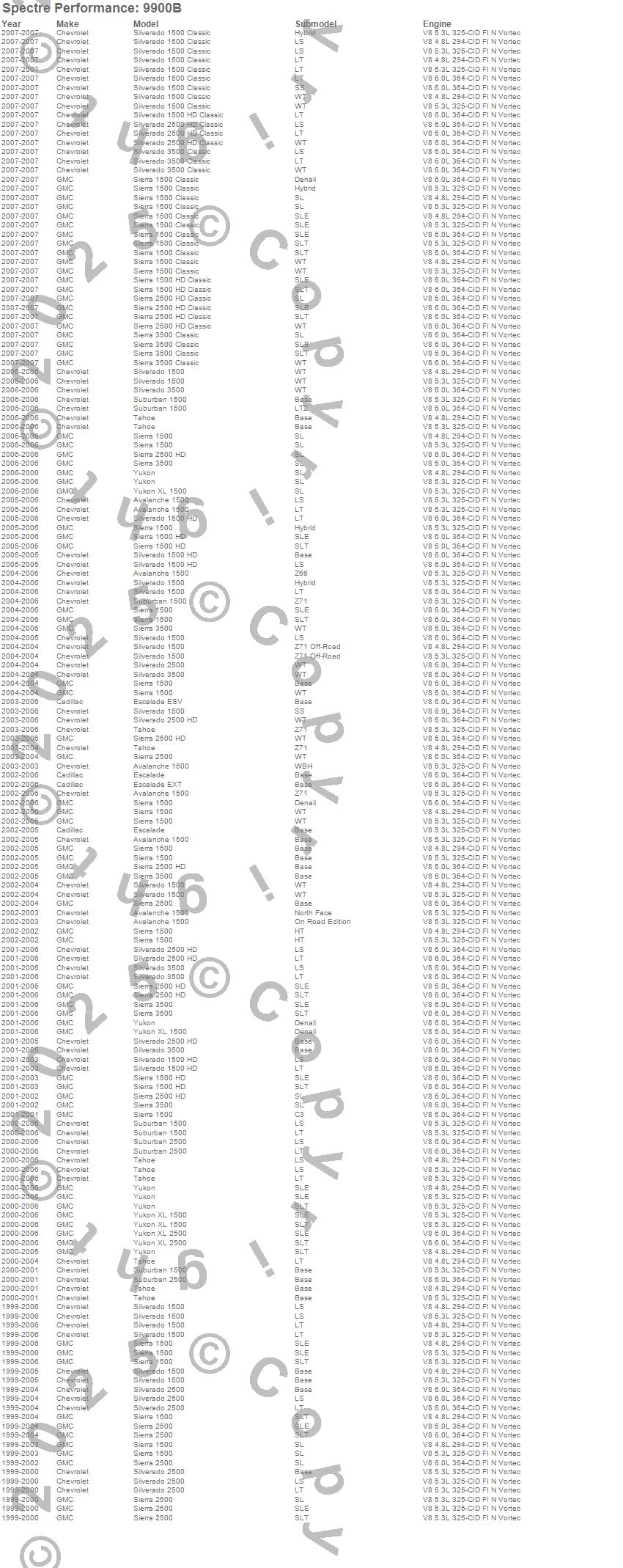 Below is an abreviated list of applications for the Air Intake Kit.
