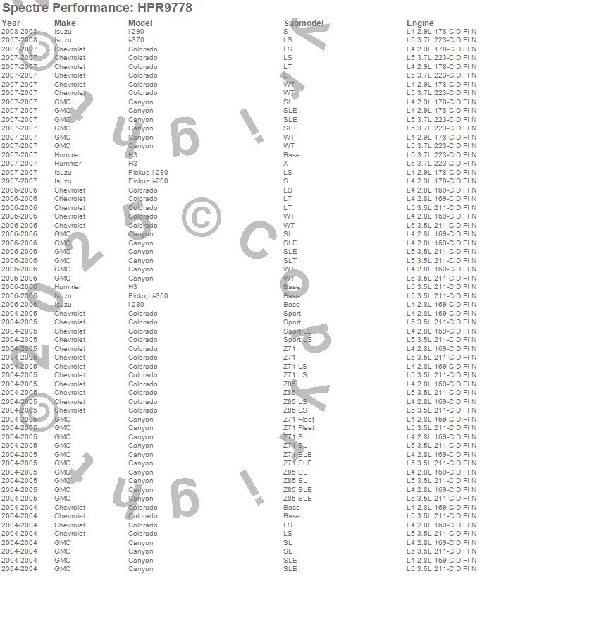 Below is an abreviated list of applications for the HPR OE Replacement Air Filter.