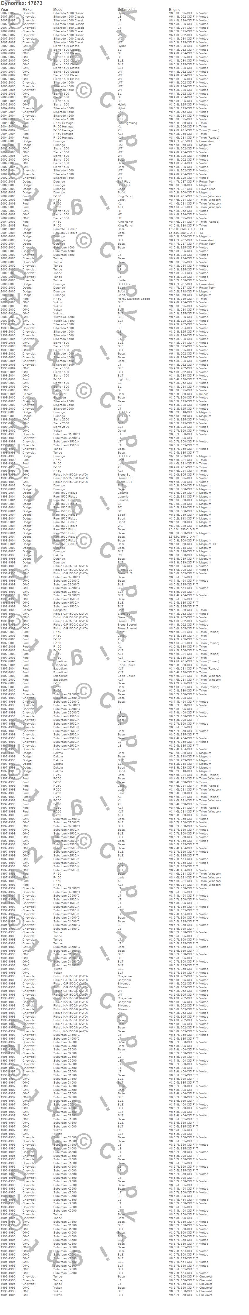 C1500 Pickup, C1500 Suburban, C2500 Suburban, Dakota, Durango, Escalade, Expedition, F-150, F-150 Heritage, F-250, K1500 Pickup, K1500 Suburban, K2500 Suburban, Navigator, Ram 1500, Ram 2500, Ram 3500, Sierra 1500, Sierra 1500 Classic, Sierra 2500 more…