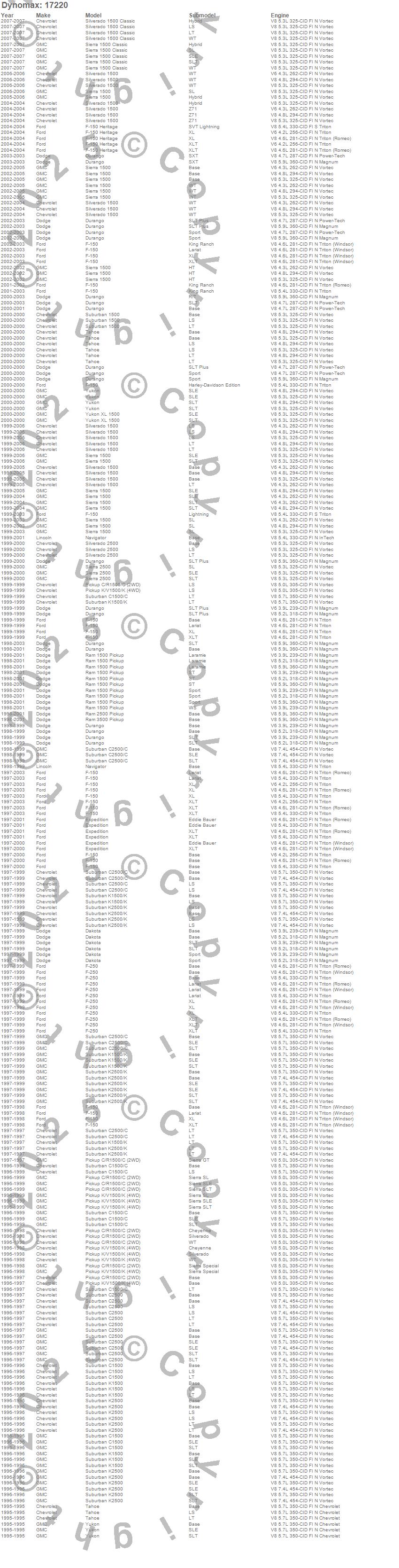 C1500 Pickup, C1500 Suburban, C2500 Suburban, Dakota, Durango, Escalade, Expedition, F-150, F-150 Heritage, F-250, K1500 Pickup, K1500 Suburban, K2500 Suburban, Navigator, Ram 1500, Ram 2500, Ram 3500, Sierra 1500, Sierra 1500 Classic, Sierra 2500 more…