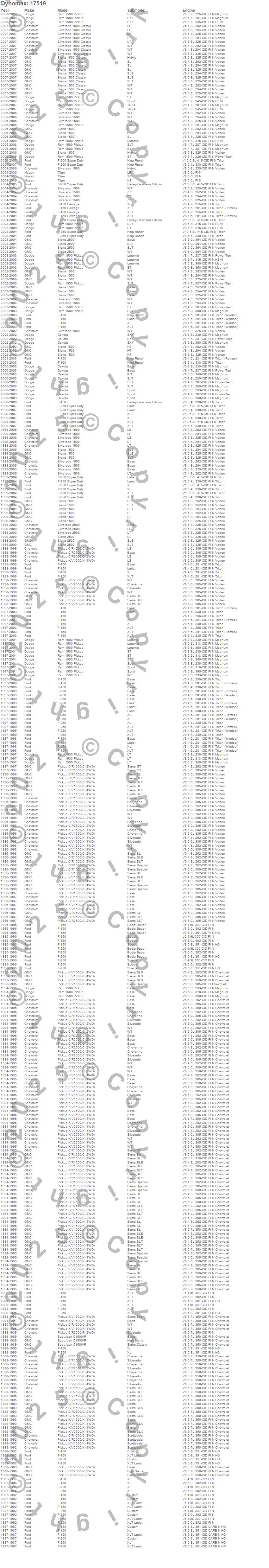 C1500, C1500 Pickup, C2500 Pickup, Dakota, F-150, F-150 Heritage, F-250, F-250 Super Duty, F-350 Super Duty, K1500, K1500 Pickup, K2500 Pickup, R20 Pickup, R2500 Pickup, Ram 1500, Sierra 1500, Sierra 1500 Classic, Sierra 2500, Silverado 1500, Silverado 1500 Classic more…