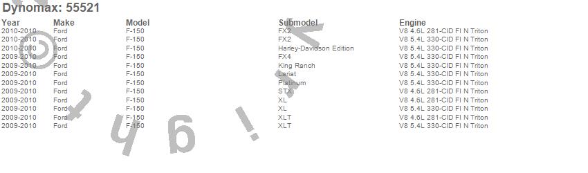 Below is an abreviated list of applications for the Single System Tail Pipe.