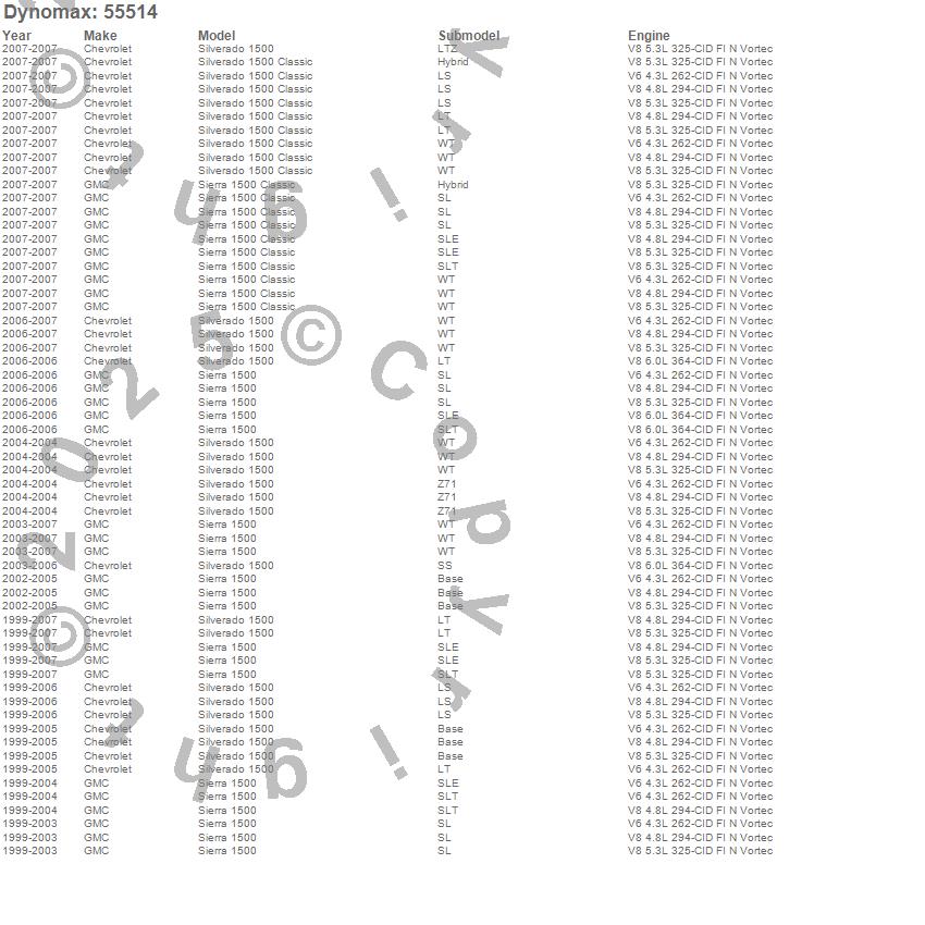 Below is an abreviated list of applications for the Dual System Tail Pipe.