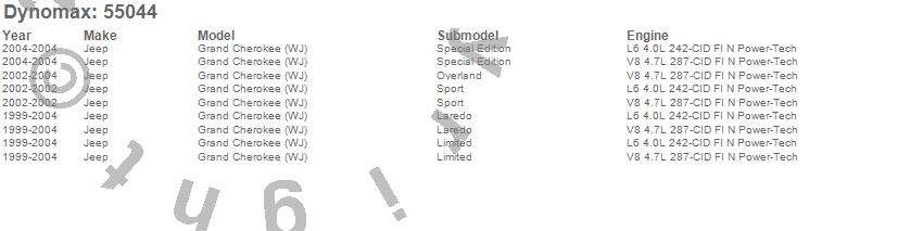 Below is an abreviated list of applications for the Single System Tail Pipe.