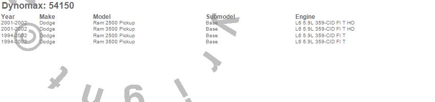 Below is an abreviated list of applications for the Single System Tail Pipe.