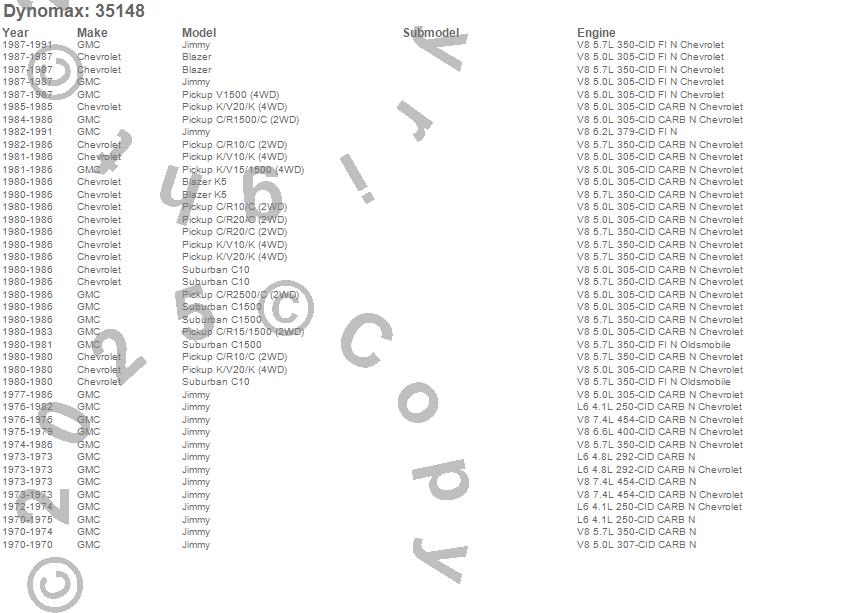 Below is an abreviated list of applications for the Exhaust Hanger.
