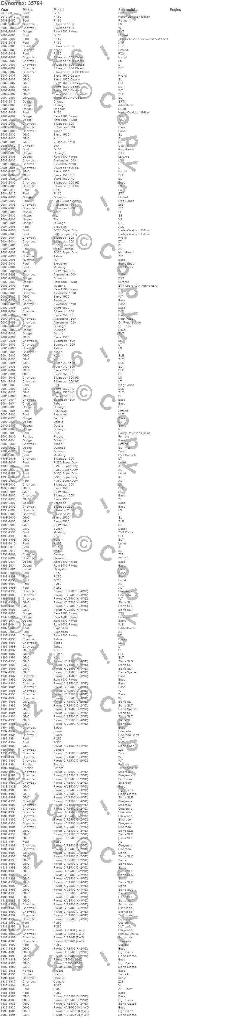 300, Aspen, Avalanche, Blazer, C1500, C1500 Pickup, C1500 Suburban, C2500 Pickup, C2500 Suburban, C3500 Pickup, Camaro, Charger, Dakota, Durango, Escalade, Excursion, Expedition, F-150, F-250, F-250 Super Duty more…