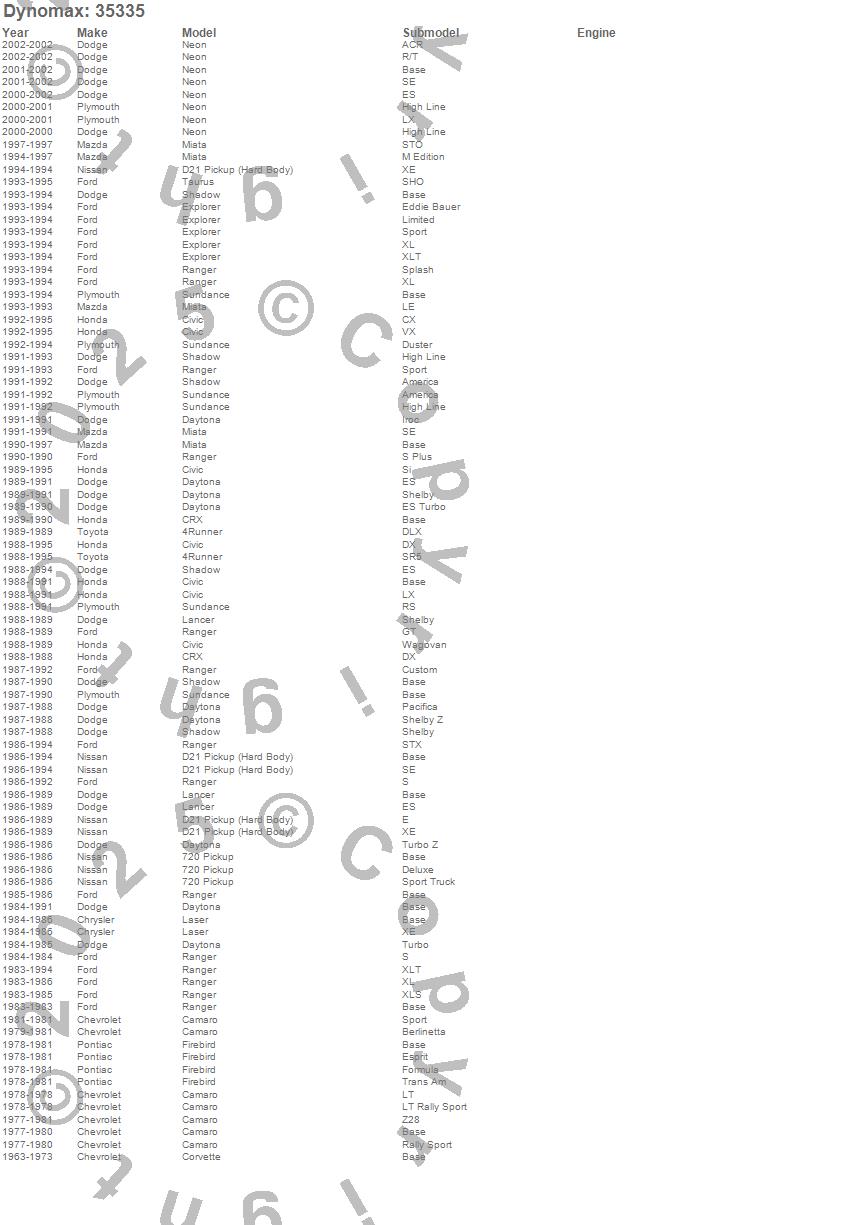 4Runner, 720 Pickup, Camaro, Civic, Corvette, CRX, D21 Pickup (Hard Body), Daytona, Explorer, Firebird, Lancer, Laser, LeBaron, Miata, Neon, Ranger, Shadow, Sundance, Taurus, Chevrolet more…