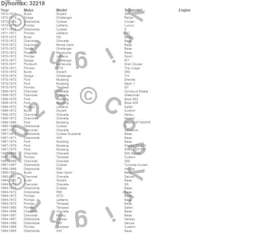 442, Barracuda, Challenger, Chevelle, Cutlass, Cutlass Supreme, F85, Gran Sport, GS, GTO, LeMans, Malibu, Monte Carlo, Mustang, Skylark, Tempest, Buick, Chevrolet, Dodge, Ford more…