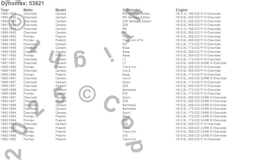 Below is an abreviated list of applications for the Car System Tail Pipe.