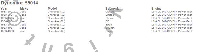 Below is an abreviated list of applications for the Single System Tail Pipe.
