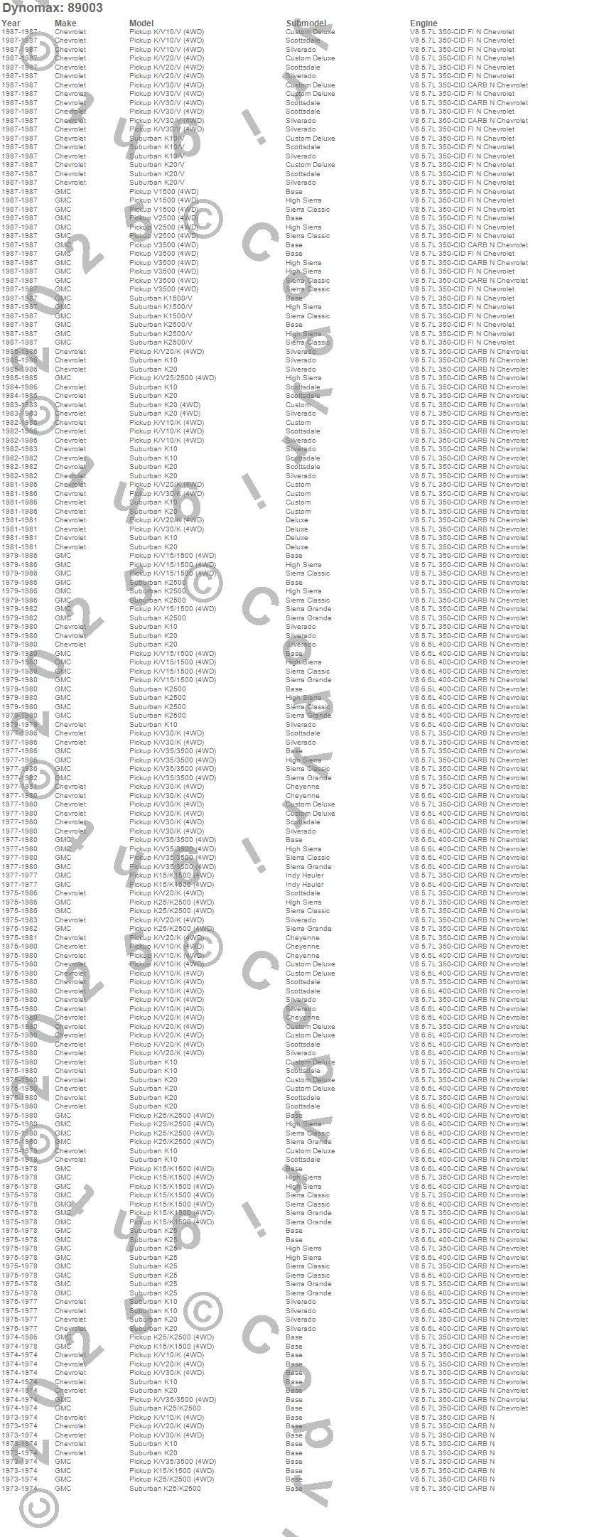 K10 Pickup, K10 Suburban, K15/K1500, K1500, K20 Pickup, K20 Suburban, K25 Pickup, K25 Suburban, K25/K2500 Pickup, K25/K2500 Suburban, K2500 Pickup, K2500 Suburban, K30 Pickup, K35 Pickup, K35/K3500 Pickup, K3500 Pickup, V10 Pickup, V10 Suburban, V1500 Pickup, V1500 Suburban more…