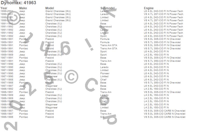 Cherokee (XJ), Firebird, Grand Cherokee (WJ), Wagoneer, Jeep, Pontiac, 2001, 2000, 1999, 1992, 1991, 1990, 1989, 1988, 1987, 1986 more…