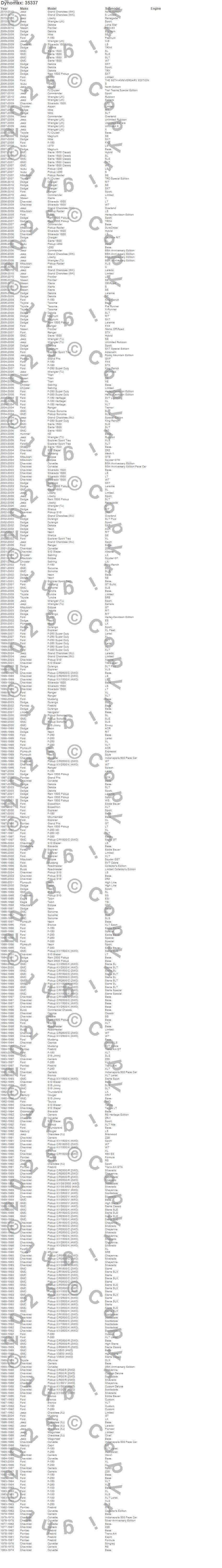 300, 4Runner, Aspen, Bravada, Bronco, C1500, C1500 Pickup, C2500 Pickup, C3500 Pickup, Camaro, Canyon, Capri, Caprice, Charger, Cherokee (XJ), Colorado, Commander, Commercial Chassis, Corvette, Cougar more…