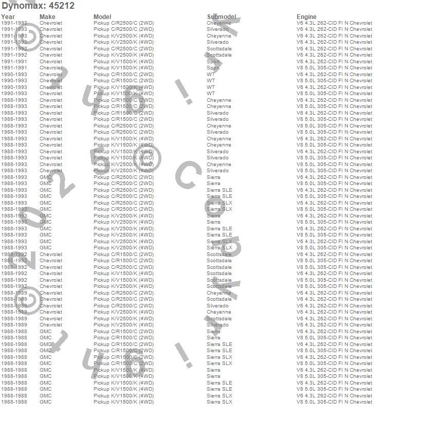 Below is an abreviated list of applications for the Single System Tail Pipe.