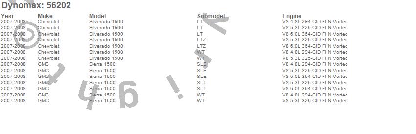 Below is an abreviated list of applications for the Single System Tail Pipe.