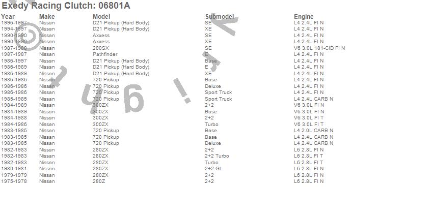 Below is an abreviated list of applications for the Stage 1 Organic Clutch Kit.