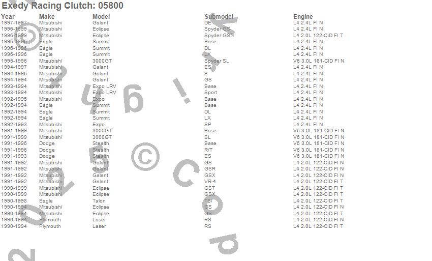 Below is an abreviated list of applications for the Stage 1 Organic Clutch Kit.
