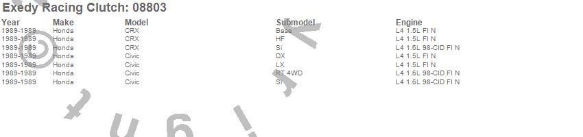 Below is an abreviated list of applications for the Stage 1 Organic Clutch Kit.