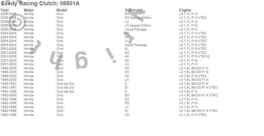 Below is an abreviated list of applications for the Stage 1 Organic Clutch Kit.