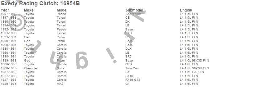 Below is an abreviated list of applications for the Stage 2 Cerametallic Clutch Kit.