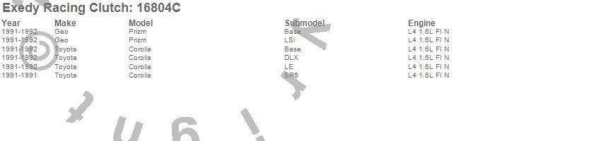 Below is an abreviated list of applications for the Stage 1 Organic Clutch Kit.