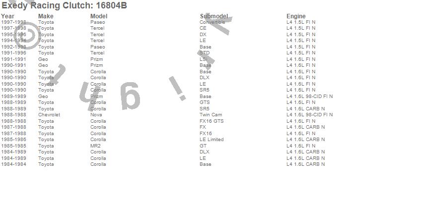 Below is an abreviated list of applications for the Stage 1 Organic Clutch Kit.