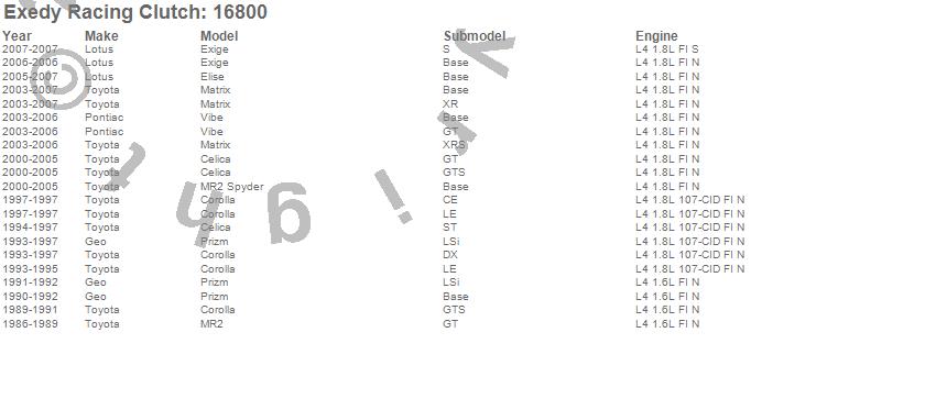 Celica, Corolla, Elise, Exige, Matrix, MR2, MR2 Spyder, Prizm, Vibe, Geo, Lotus, Pontiac, Toyota, 2007, 2006, 2005, 2004, 2003, 2002, 2001 more…