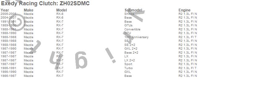 Below is an abreviated list of applications for the Carbon-D Clutch Kit.