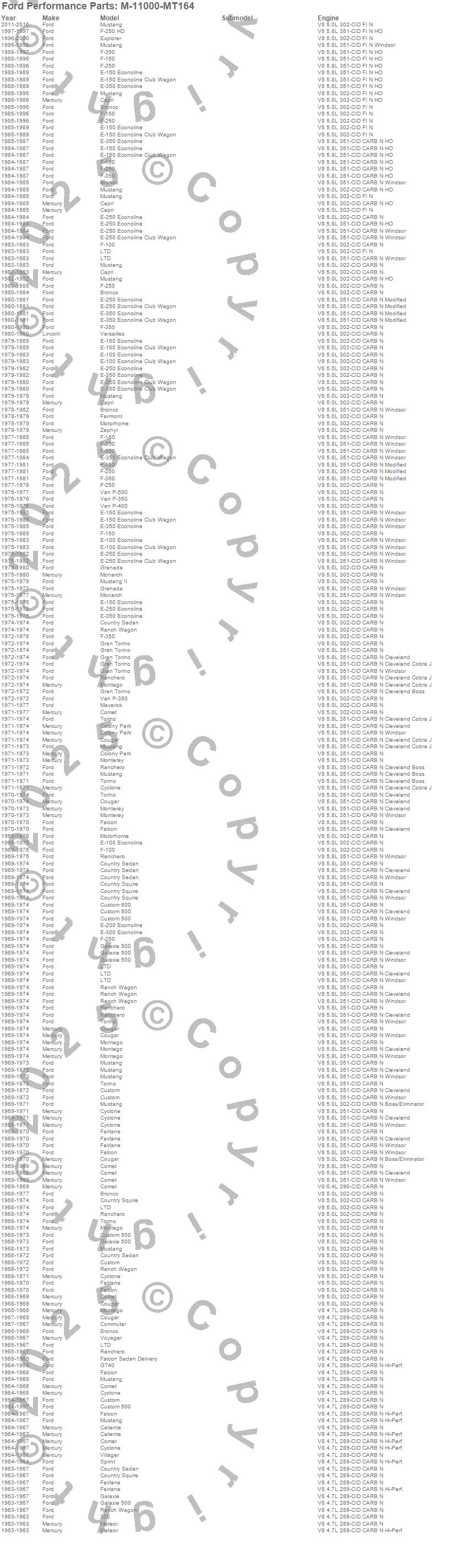 Bronco, Caliente, Capri, Club Cargo, Colony Park, Comet, Commuter, Cougar, Country Sedan, Country Squire, Custom, Custom 500, Cyclone, E-100 Econoline, E-100 Econoline Club Wagon, E-150 Econoline, E-150 Econoline Club Wagon, E-200 Econoline, E-250 Econoline, E-250 Econoline Club Wagon more…