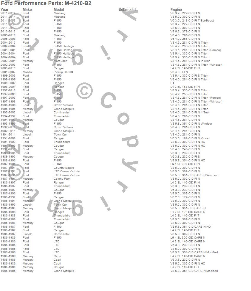 B4000, Capri, Colony Park, Continental, Cougar, Country Squire, Crown Victoria, F-150, F-150 Heritage, Grand Marquis, LTD, LTD Crown Victoria, Marauder, Mustang, Ranger, Thunderbird, Town Car, Ford, Lincoln, Mazda more…