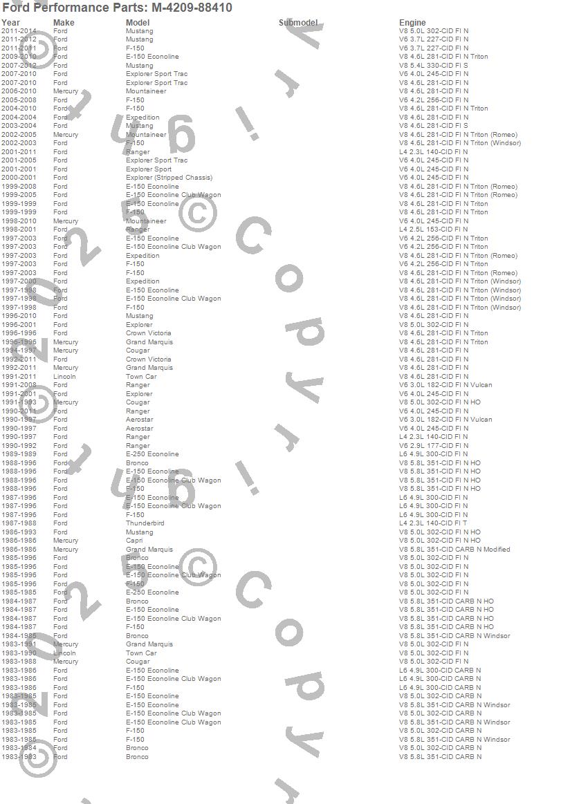 Aerostar, Bronco, Capri, Cougar, Crown Victoria, E-150 Econoline, E-150 Econoline Club Wagon, Expedition, Explorer, Explorer Sport Trac, F-150, Grand Marquis, Mountaineer, Mustang, Ranger, Thunderbird, Town Car, Ford, Lincoln, Mercury more…