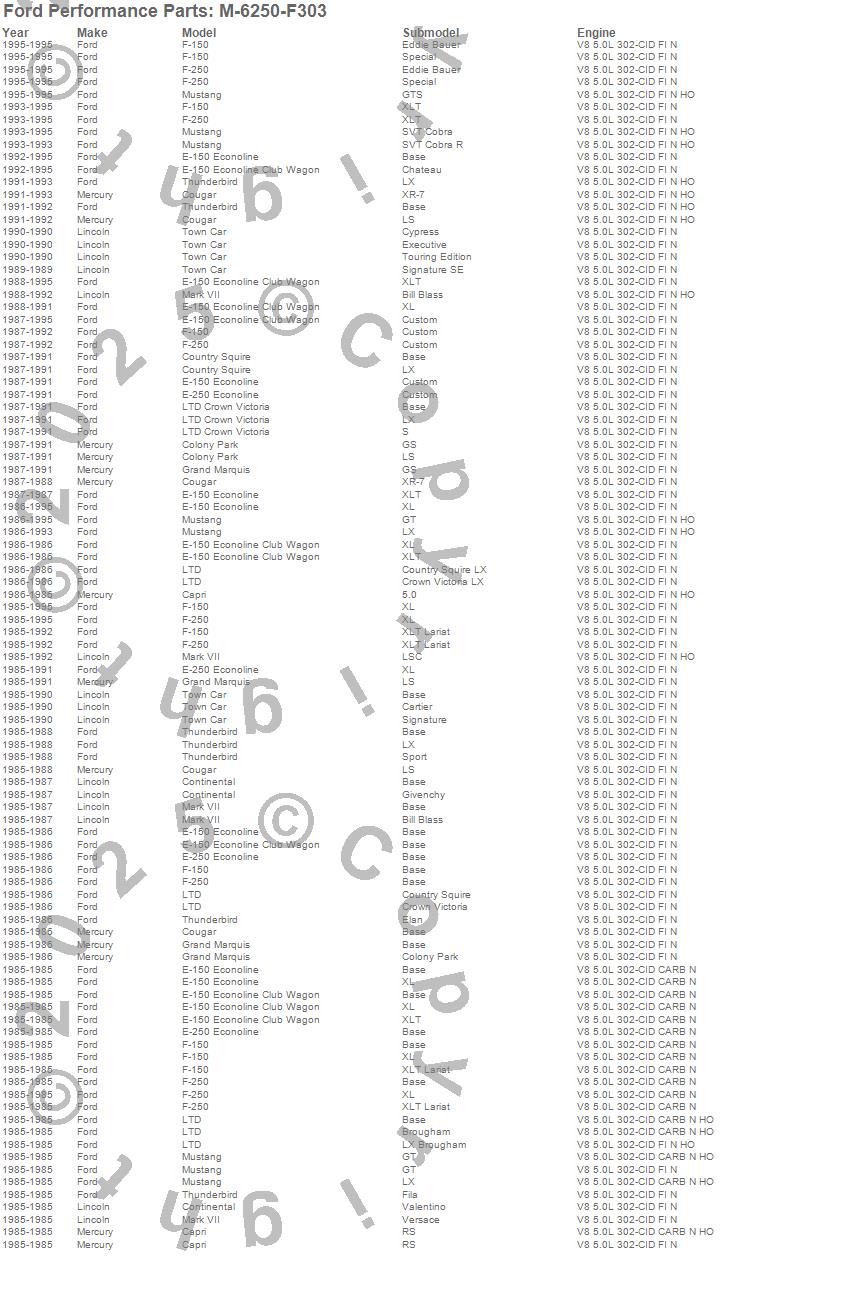 Capri, Colony Park, Continental, Cougar, Country Squire, E-150 Econoline, E-150 Econoline Club Wagon, E-250 Econoline, F-150, F-250, Grand Marquis, LTD, LTD Crown Victoria, Mark VII, Marquis, Mustang, Thunderbird, Town Car, Ford, Lincoln more…