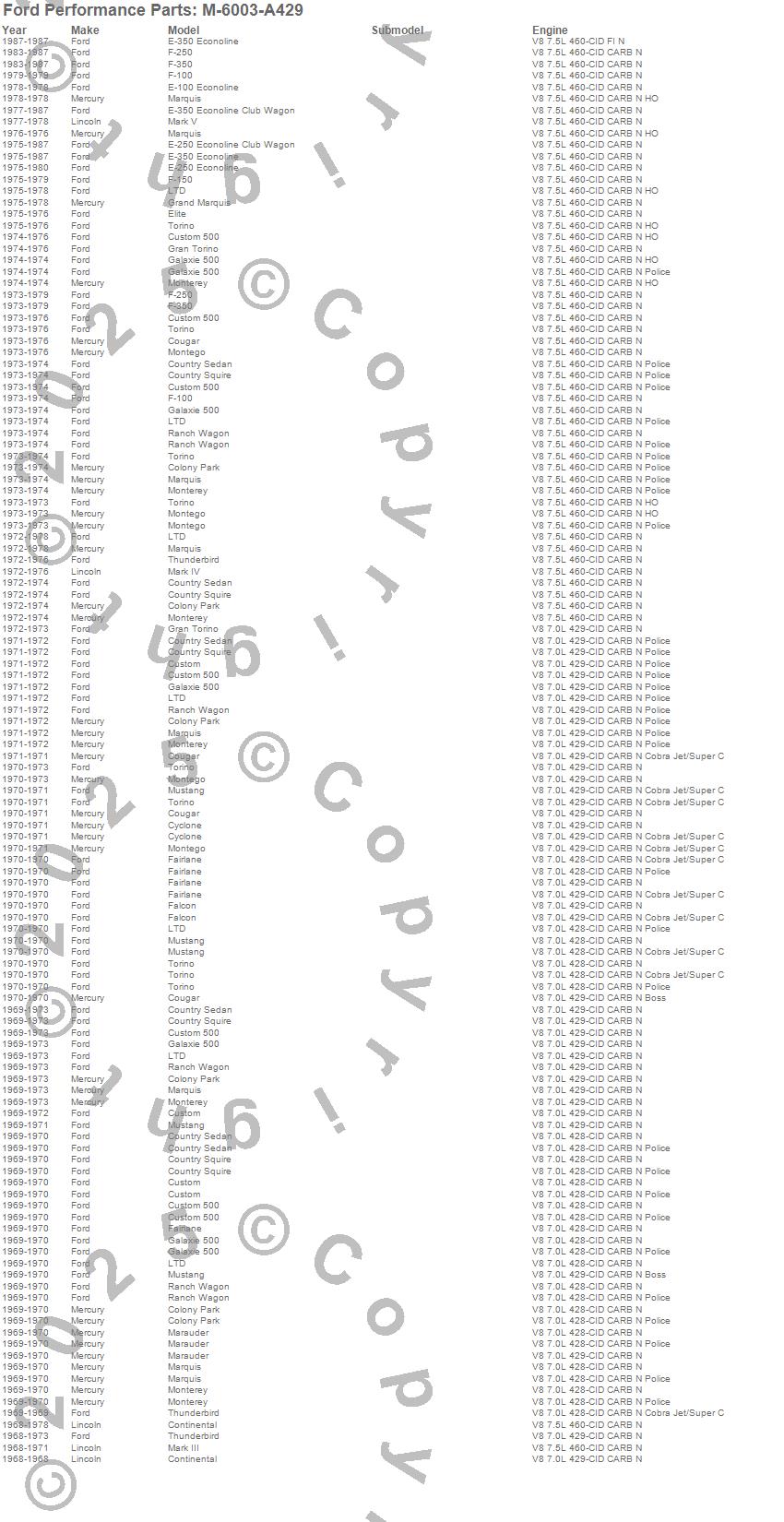 Ford Performance Parts Engine Gasket Set # M-6003-A429 - Complete Overhaul Gasket Set For 429/460