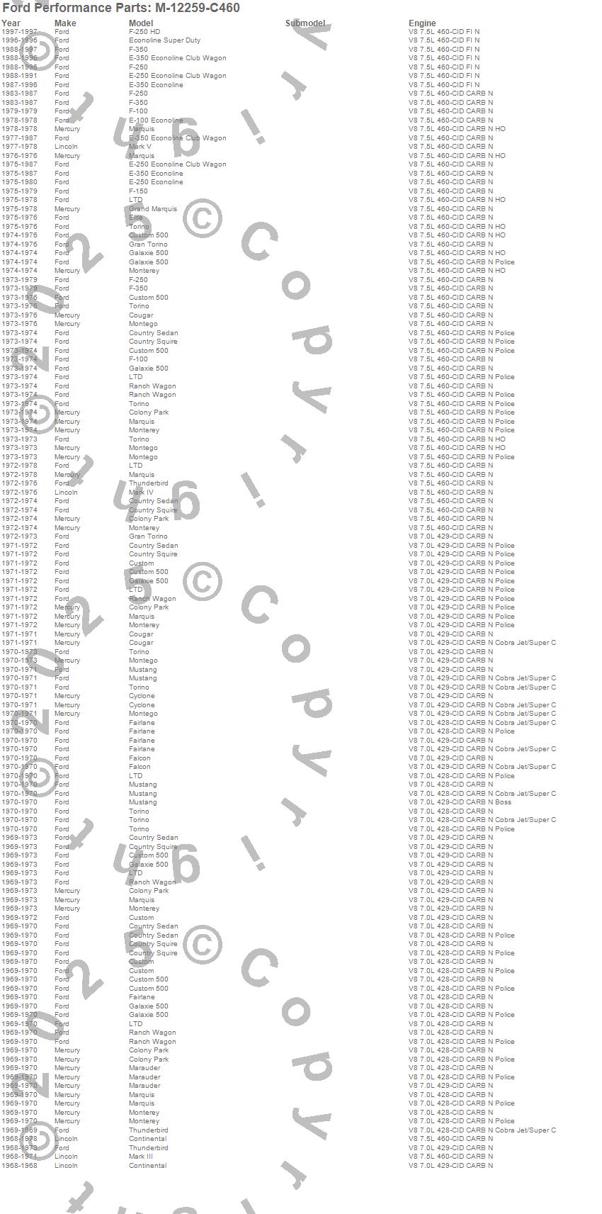 Colony Park, Continental, Cougar, Country Sedan, Country Squire, Custom, Custom 500, Cyclone, E Super Duty, E-100 Econoline, E-150 Econoline, E-250 Econoline, E-250 Econoline Club Wagon, E-350 Econoline, E-350 Econoline Club Wagon, Elite, F-100, F-150, F-250, F-350 more…