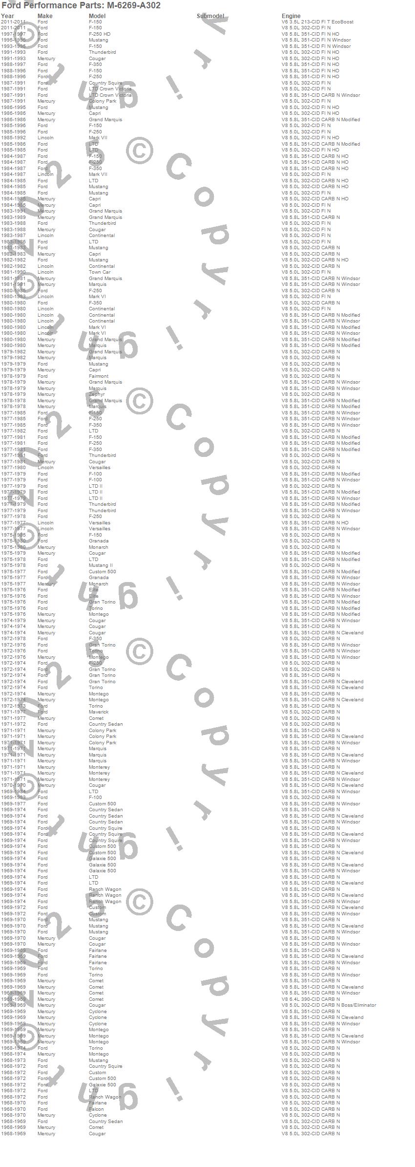 Capri, Colony Park, Comet, Continental, Cougar, Country Sedan, Country Squire, Custom, Custom 500, Cyclone, Elite, F-100, F-150, F-250, F-350, Fairlane, Fairmont, Falcon, Galaxie 500, Gran Torino more…