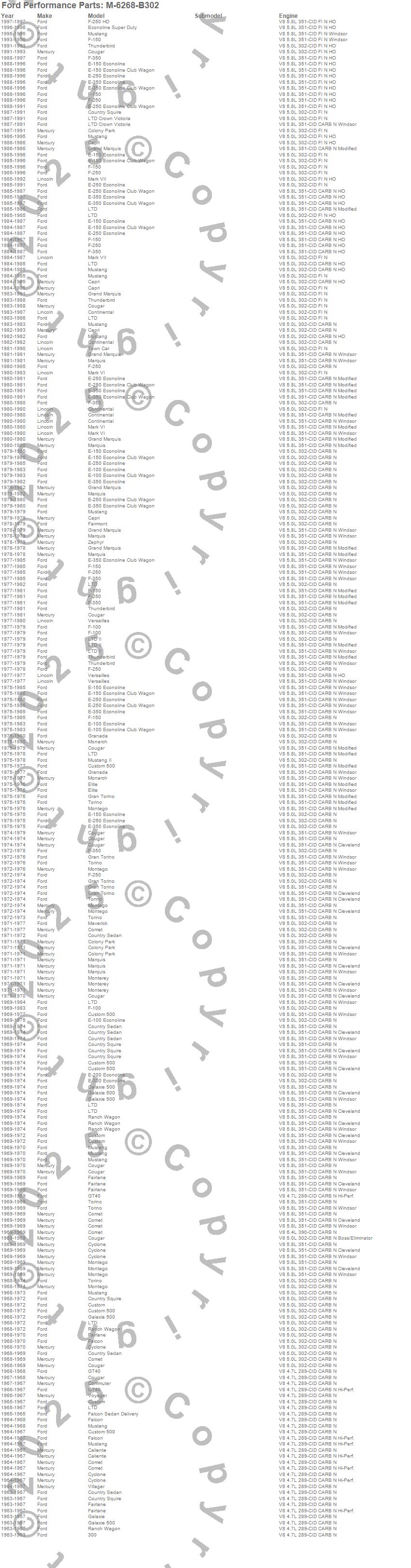 Caliente, Capri, Club Cargo, Colony Park, Comet, Commuter, Continental, Cougar, Country Sedan, Country Squire, Custom, Custom 500, Cyclone, E Super Duty, E-100 Econoline, E-100 Econoline Club Wagon, E-150 Econoline, E-150 Econoline Club Wagon, E-200 Econoline, E-250 Econoline more…