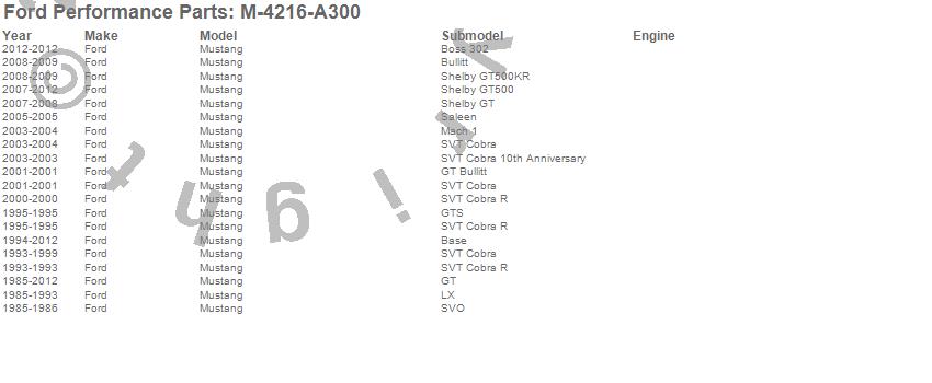 Mustang, Ford, 2012, 2011, 2010, 2009, 2008, 2007, 2006, 2005, 2004, 2003, 2002, 2001, 2000, 1999, 1998, 1997, 1996, 1995 more...
