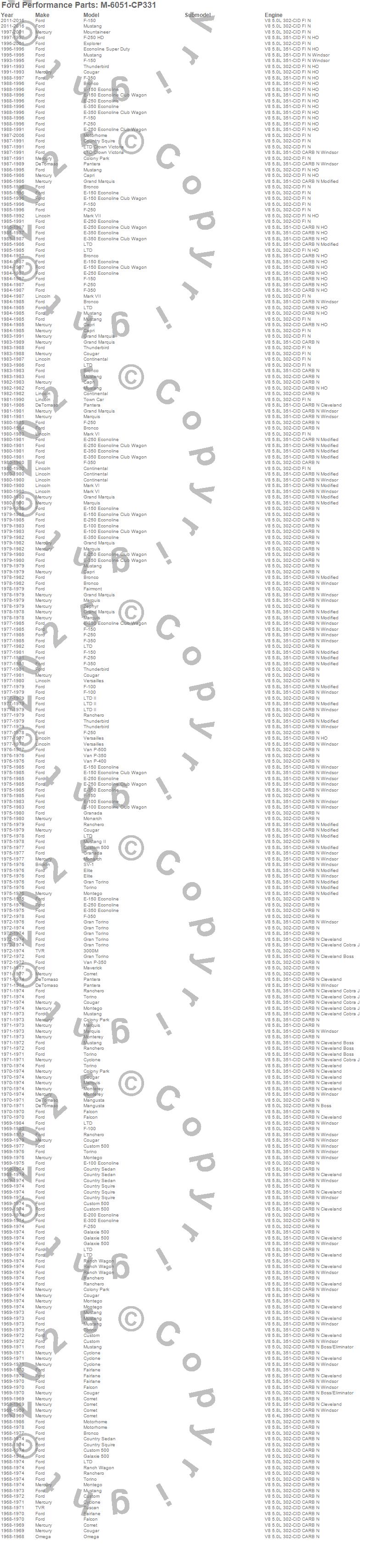 3000M, Bronco, Capri, Colony Park, Comet, Continental, Cougar, Country Sedan, Country Squire, Custom, Custom 500, Cyclone, E Super Duty, E-100 Econoline, E-100 Econoline Club Wagon, E-150 Econoline, E-150 Econoline Club Wagon, E-200 Econoline, E-250 Econoline, E-250 Econoline Club Wagon more…
