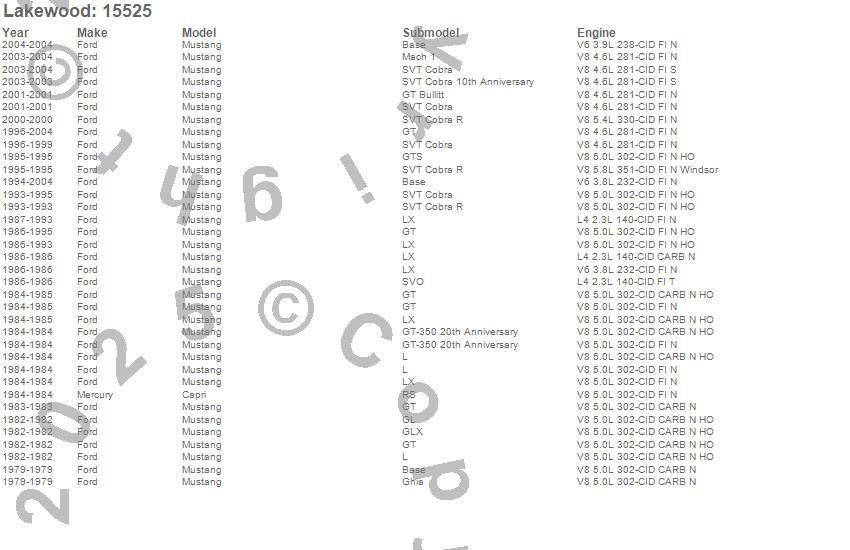 Capri, Mustang, Ford, Mercury, 2004, 2003, 2002, 2001, 2000, 1999, 1998, 1997, 1996, 1995, 1994, 1993, 1992, 1991, 1990, 1989 more…