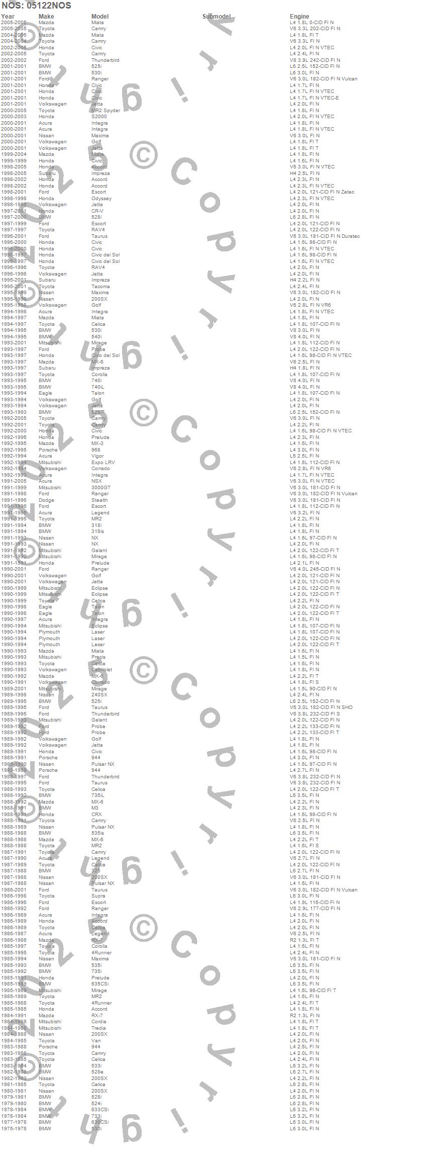 200SX, 240SX, 3000GT, 318i, 318is, 325, 385, 4Runner, 525i, 525iT, 528e, 528i, 530i, 533i, 535i, 535is, 540i, 630CSi, 633CSi, 635CSi more…