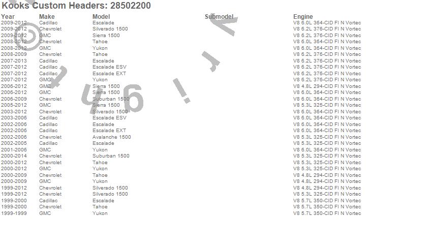 Below is an abreviated list of applications for the Stainless Steel Headers.