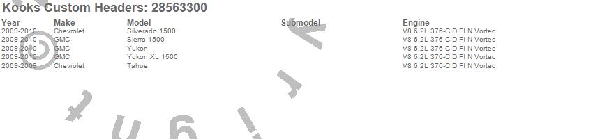 Below is an abreviated list of applications for the GREEN Catted Y-Pipe.